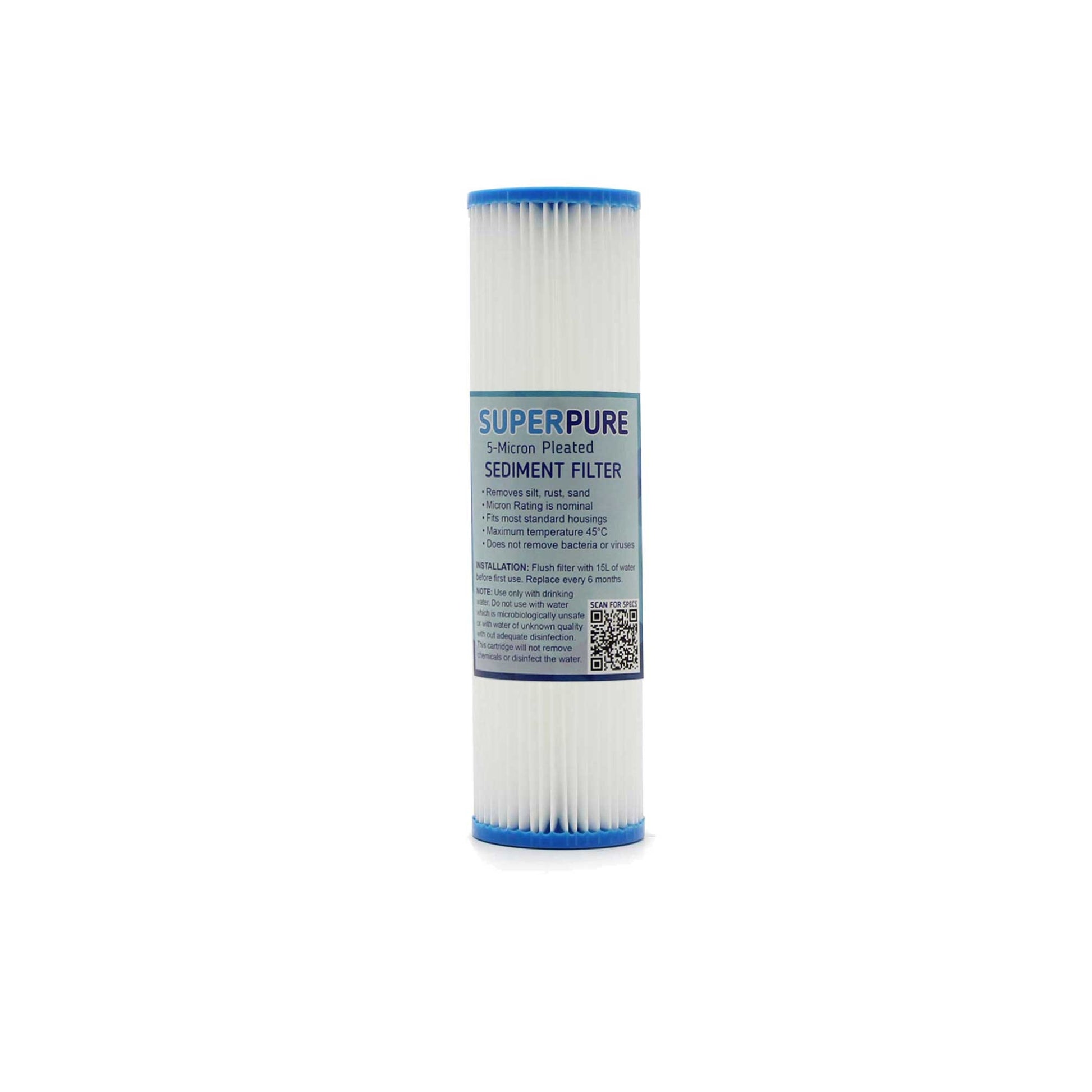 Upgrade your water system today with the SUPERPURE 10inch Pleated Sediment Filter (5 Micron) — premium filtration you can rely on.