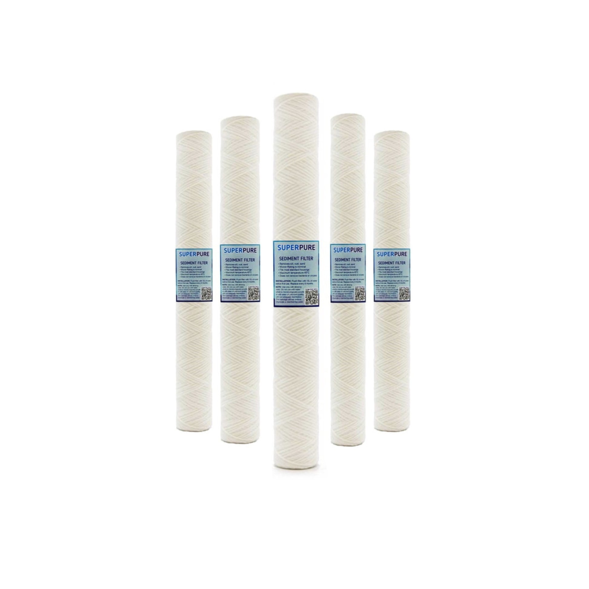 Upgrade your system with the SUPERPURE 20inch String Wound Sediment Filter (5 Micron, 5 Pack) — industrial strength, extended lifespan, and unbeatable value.
