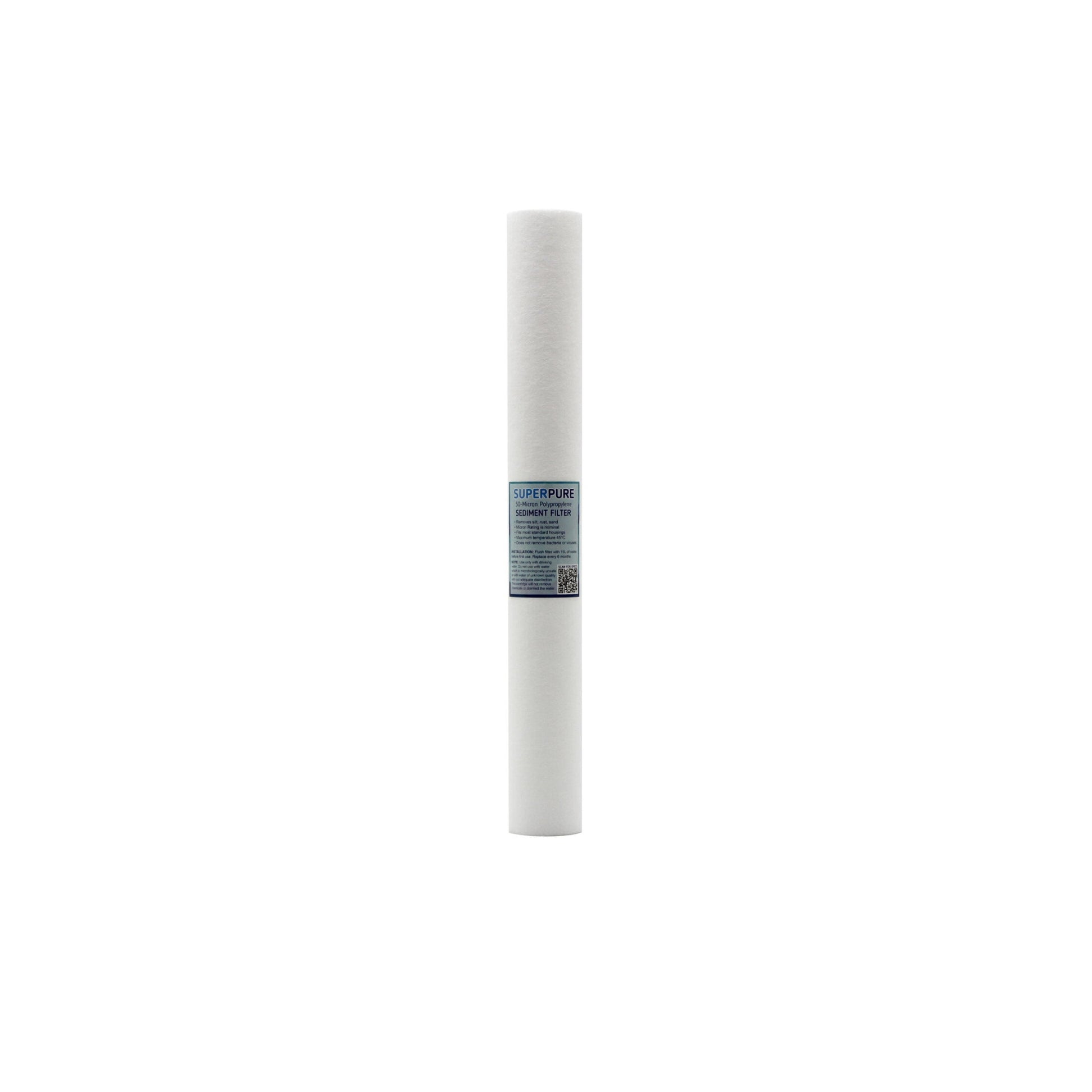 The SUPERPURE 20inch Sediment Filter delivers exceptional filtration depth and dirt-holding capacity, ensuring a steady flow rate while extending the life of your downstream filters and appliances.