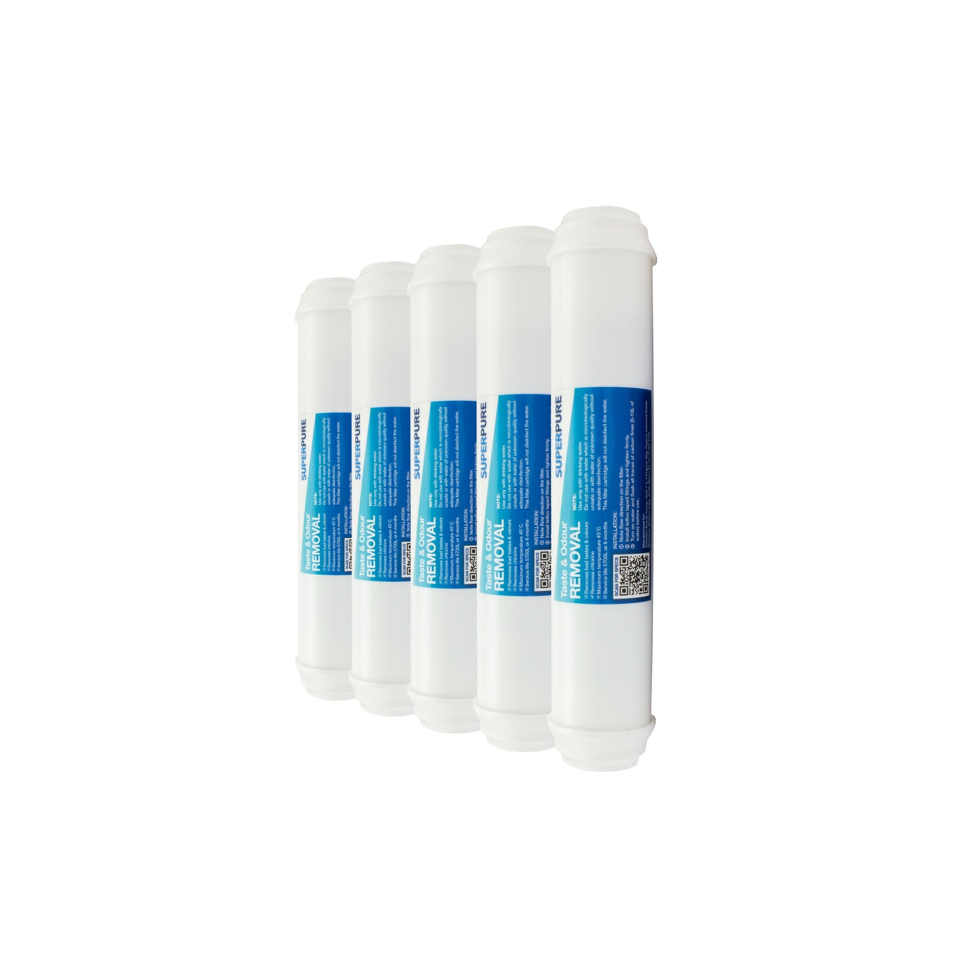5 × SUPERPURE Inline Taste & Odour Water Filter Replacement Cartridges
